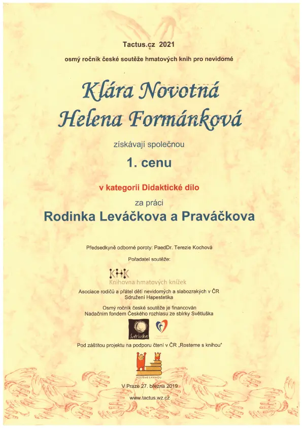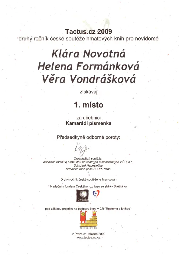 Nabízíme přepis, úpravu a tisk učebnic v Braillově písmu. Text je zároveň opatřen i soutiskem v černotisku pro lepší orientaci doprovázející osoby. Učebnice bývají doplněny hmatovými obrázky a grafy. Zároveň dodáváme hmatové pomůcky: „encyklopedie“, „skříňky“ a „sbírky“ (soubory modelů a hmatových pomůcek k danému tématu), atlasy (hmatové mapy) a stavebnice (geometrická a chemická).